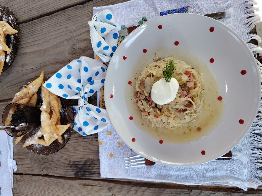 Két étellel kellett készülnünk az erdélyi ízvilágot megidézve. Csapatunk székelyföldi kapros székelykáposztát és csörögefánkot készített.